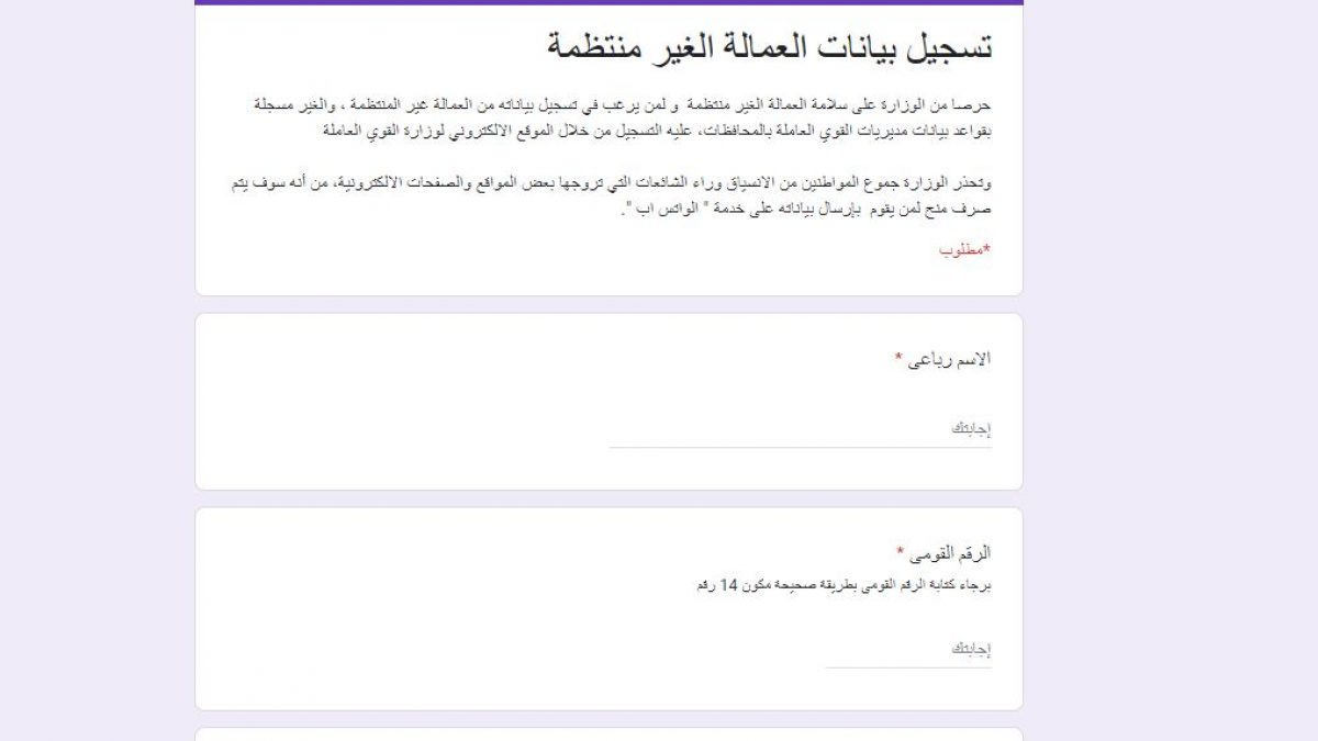التسجيل في القوى العامله للعماله الغير منتظمه الم حيط