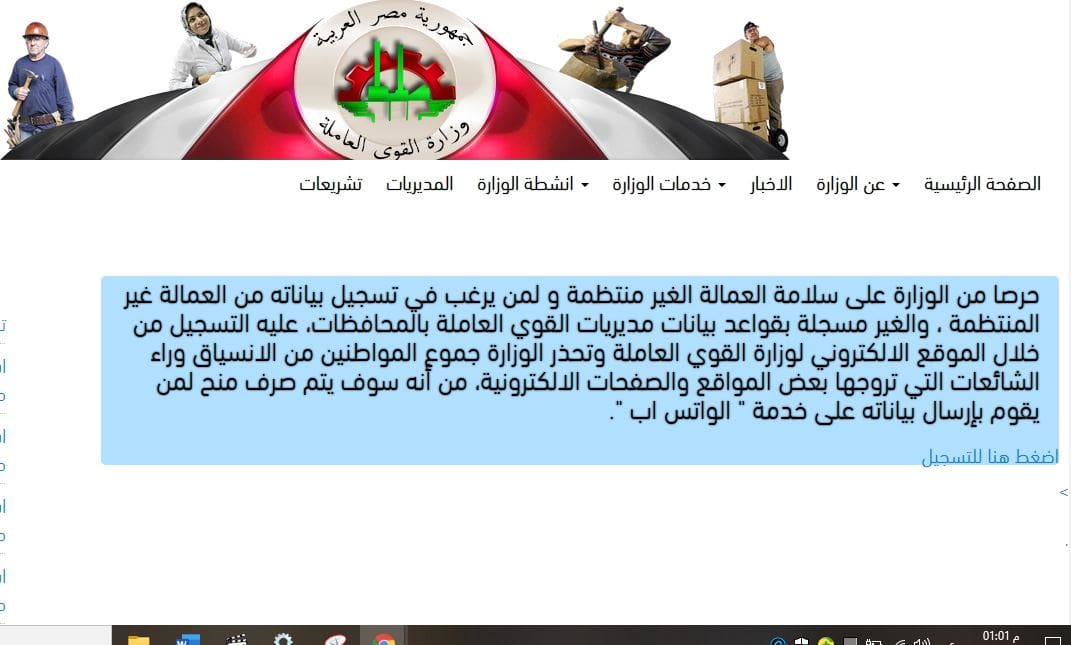 موقع وزارة القوى العاملة 2020 رابط تسجيل العمالة الغير منتظمة